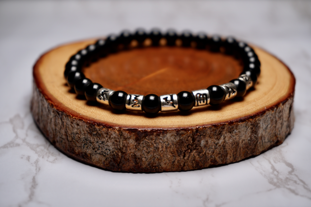 Design: Black Onyx & 6 Sterling Silver Om Mani Padme Hum Pieces