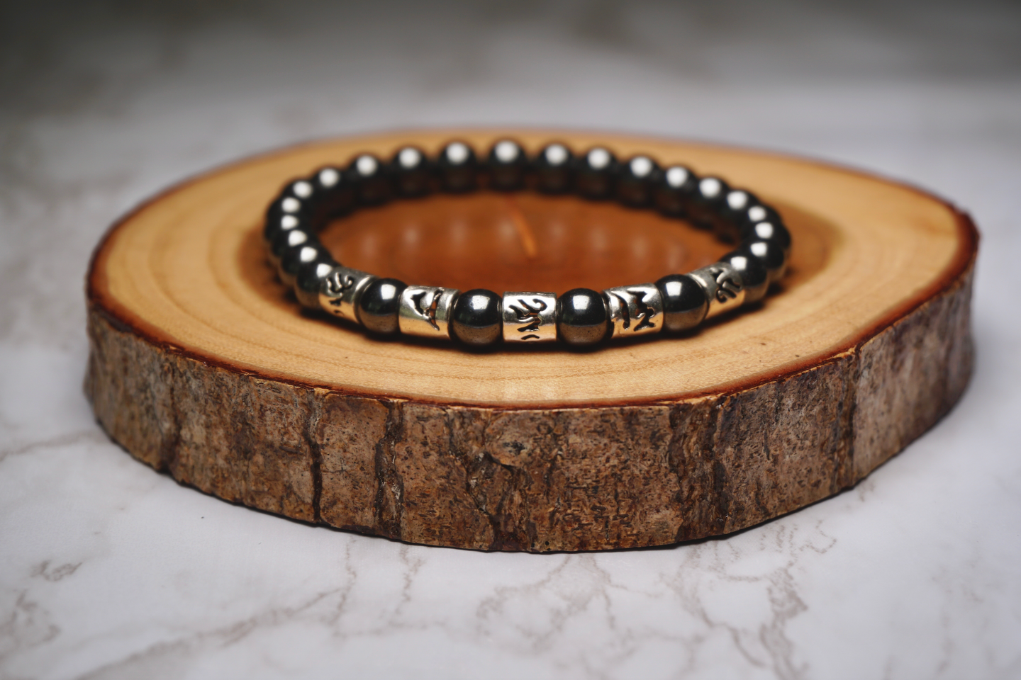 Design: Hematite & Sterling Silver Om Mani Padme Hum Pieces