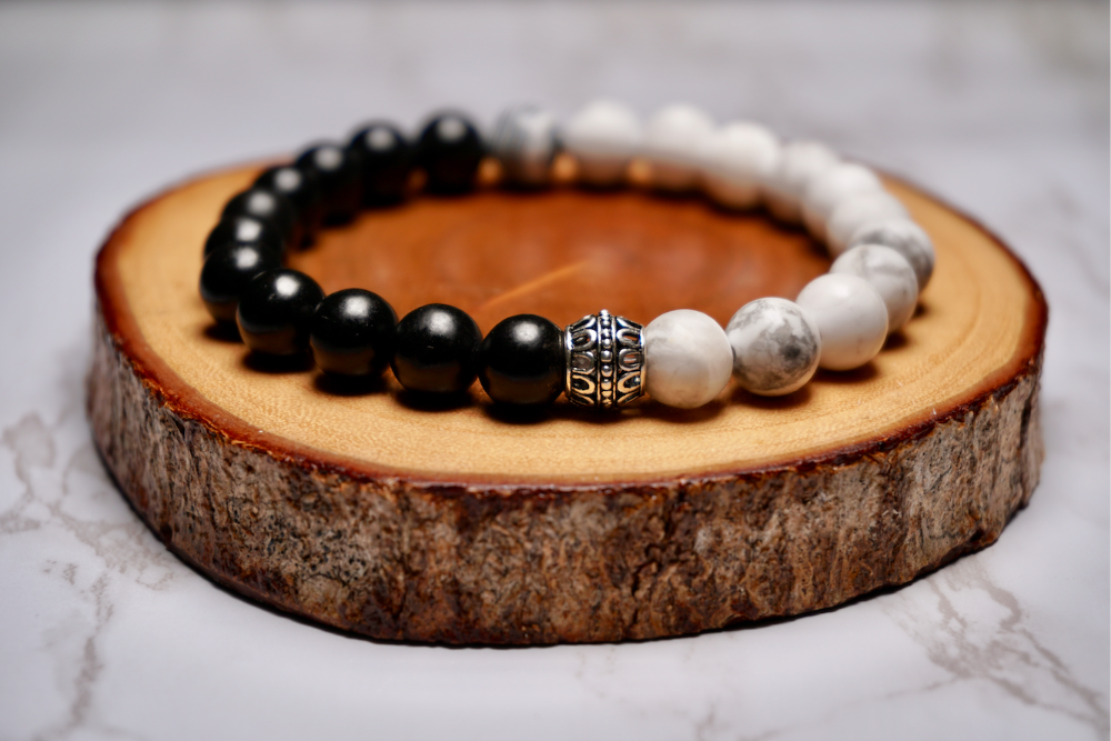 Design: White Howlite, Black Onyx & 1 Sterling Silver Spacer