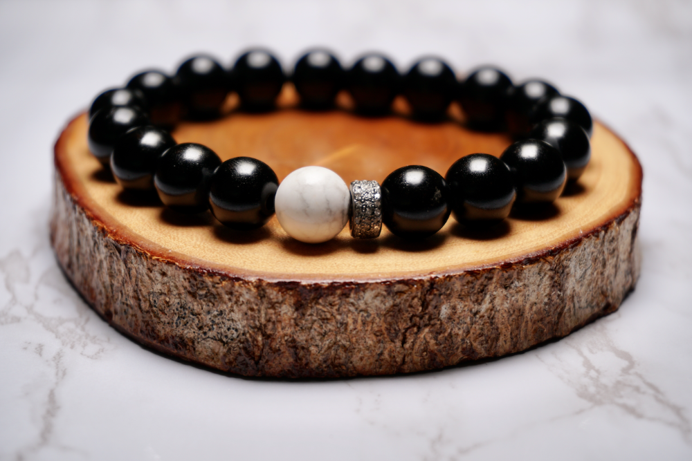 Design: Black Onyx, White Howlite, Diamond Spacer