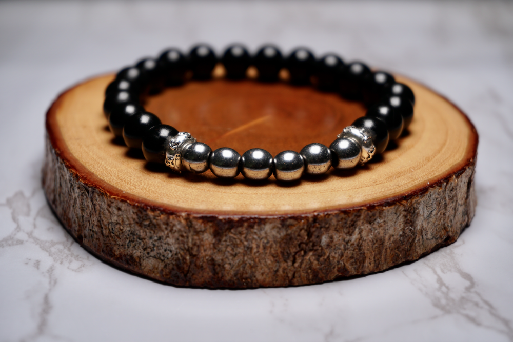 Design: Black Obsidian, Hematite & 2 Sterling Silver Spacers