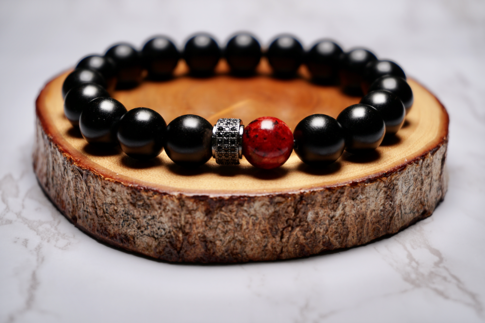 Design: Black Onyx, Red Jasper & CZ Spacer
