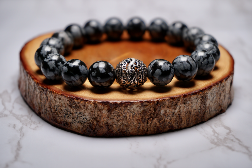 Design: Snowflake Obsidian & Sterling Silver Dragon