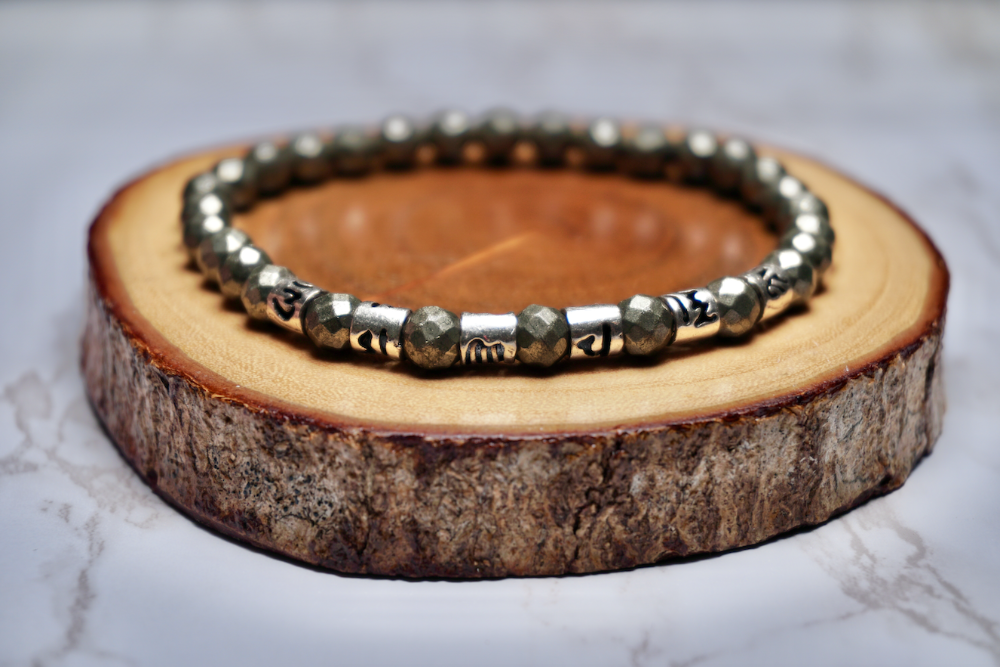 Design: Pyrite & Sterling Silver Om Mani Padme Hum Pieces