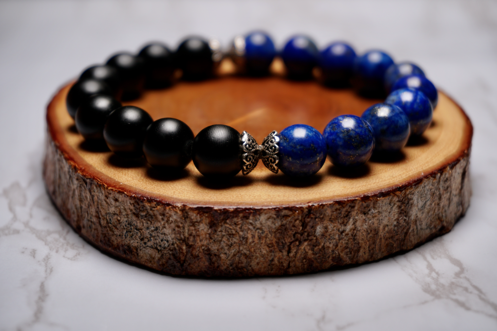 Design: Black Onyx, Lapis Lazuli  & 2 Sterling Silver Spacers