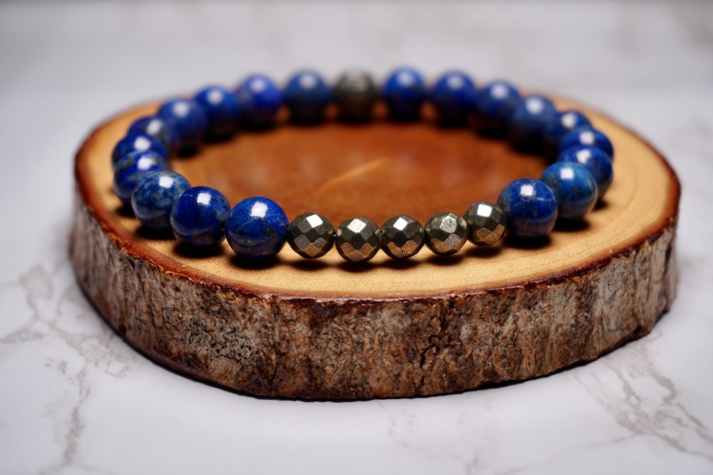 Design: Lapis Luzuli, Pyrite & Diamond CZ Pave Stone